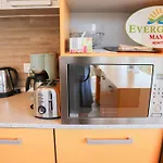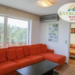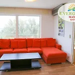 Evergreen Vlas Mamaia Sud van 72 m^2 ligt amper 600 meter van Lacul Tabacariei en biedt gasten een buitenzwembad voor een meer ontspannen verblijf. Mihail Kogalniceanu ligt op afstand van 30 km van het 2-slaapkamer appartement en Sat Vacanta busstation is op 550 meter loopafstand.